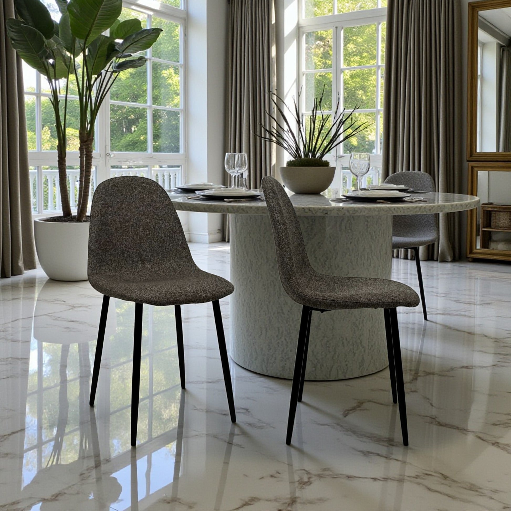 - Texture che valorizza la forma della sedia → dona personalità senza risultare eccessivo.